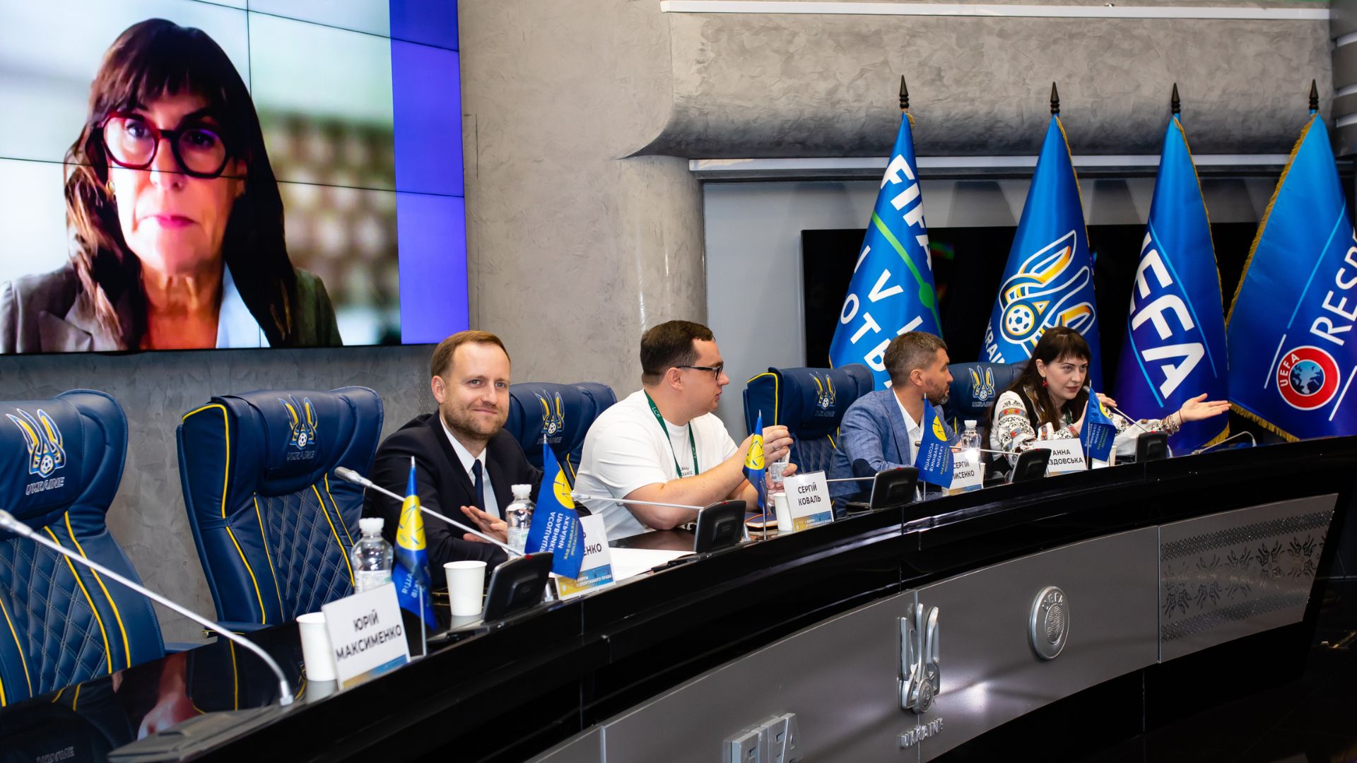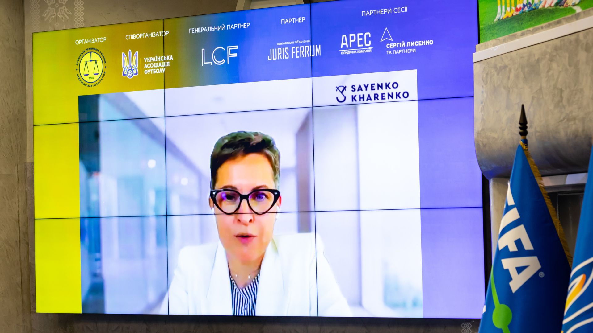 Oksana Zalizko, Chair of the Control and Disciplinary Committee of the Ukrainian Association of Football (UAF) and PhD in Law, presented a comprehensive overview of the football justice system in Ukraine.