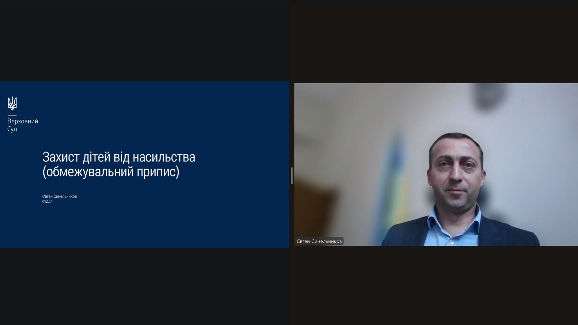 Суддя Верховного Суду у Касаційному цивільному суді Євген Синельников представив актуальний огляд судової практики щодо захисту дітей від домашнього насильства. У фокусі його виступу — інститут обмежувального припису як дієвий правовий інструмент запобігання насильству в сімейному середовищі.