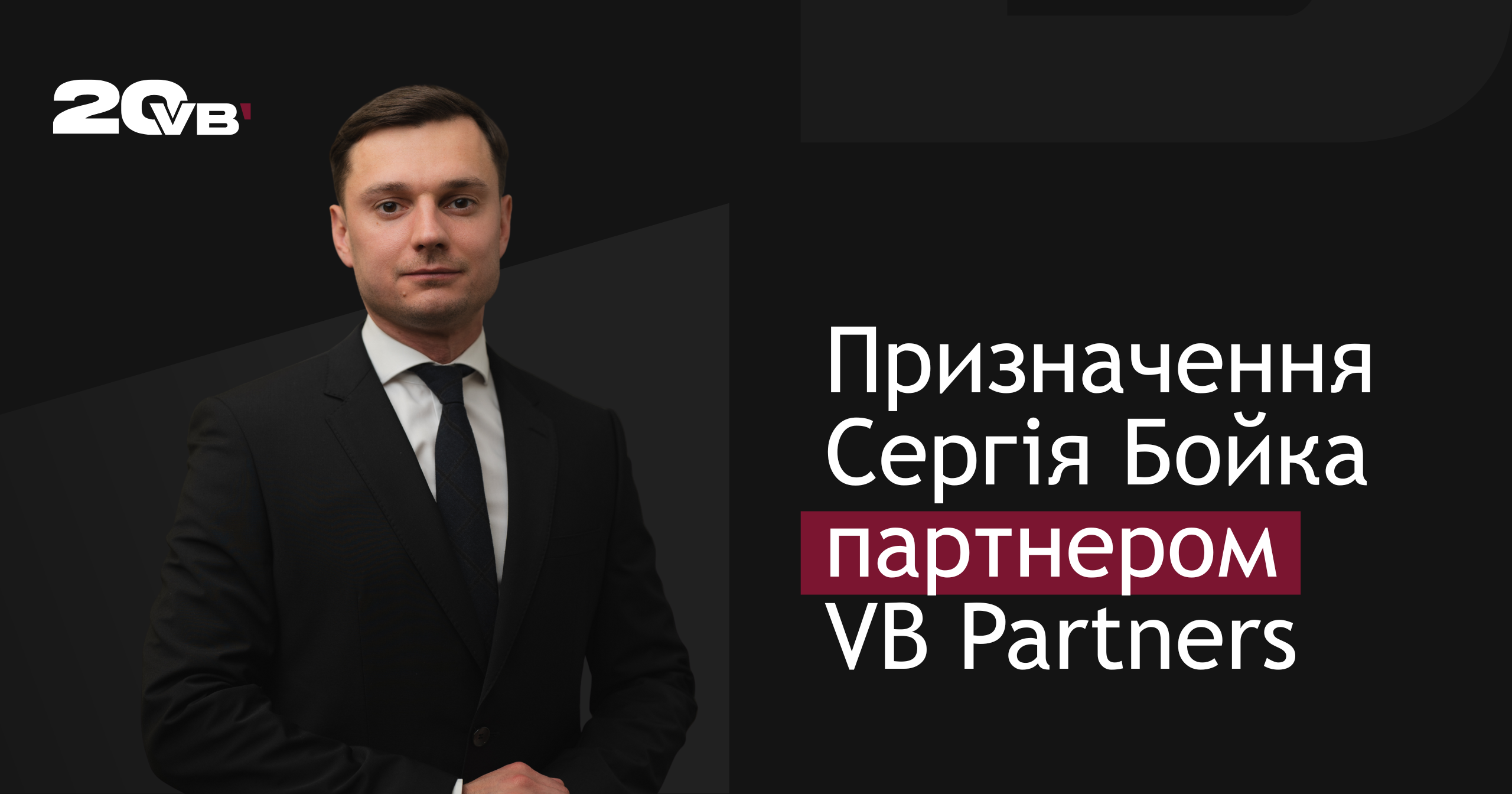 Вітаємо Сергія Бойка з приєднанням до партнерського складу VB Partners та бажаємо подальших професійних успіхів.